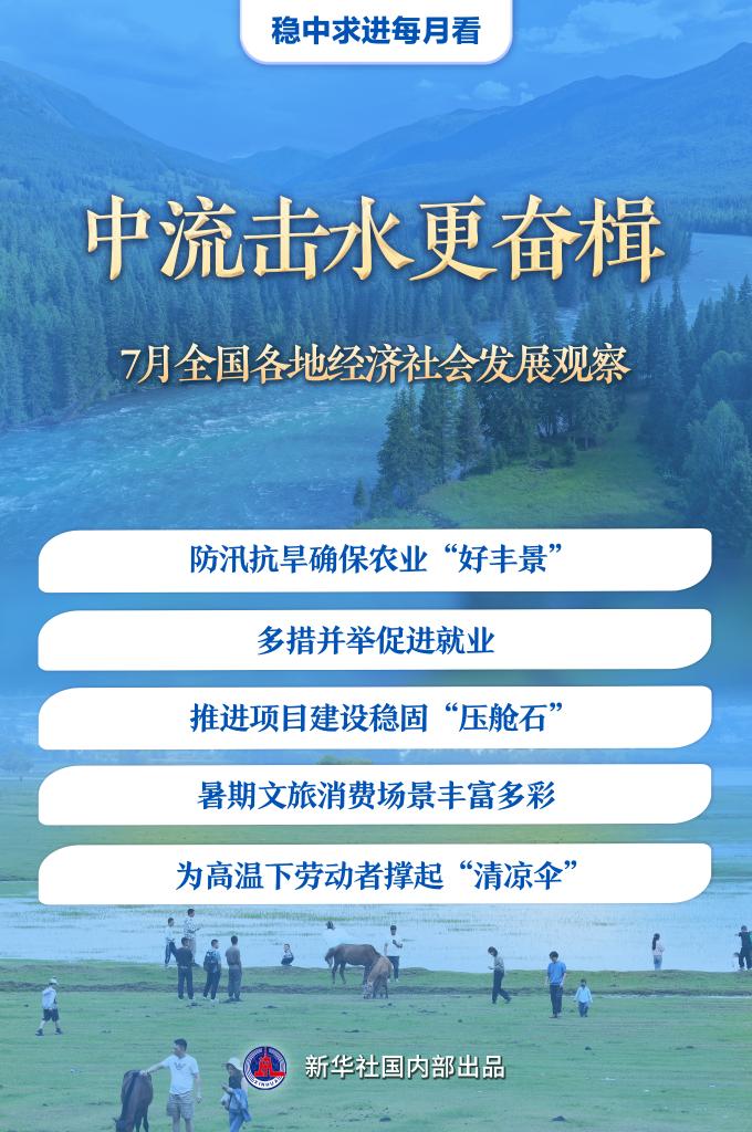 7月是下半年經(jīng)濟運行開局的關鍵時段。防汛抗旱應對極端天氣挑戰(zhàn),促就業(yè)推出新舉措,重大項目壓茬推進……行至年中,各地凝聚力量,奮楫前進,不斷增進民生福祉,更好地推動高質量發(fā)展。