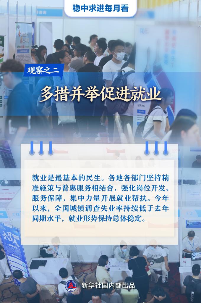 【記者觀察】就業(yè)是最基本的民生。各地各部門堅持精準施策與普惠服務相結合,強化崗位開發(fā)、服務保障,集中力量開展就業(yè)幫扶。今年以來,全國城鎮(zhèn)調(diào)查失業(yè)率持續(xù)低于去年同期水平,就業(yè)形勢保持總體穩(wěn)定。
