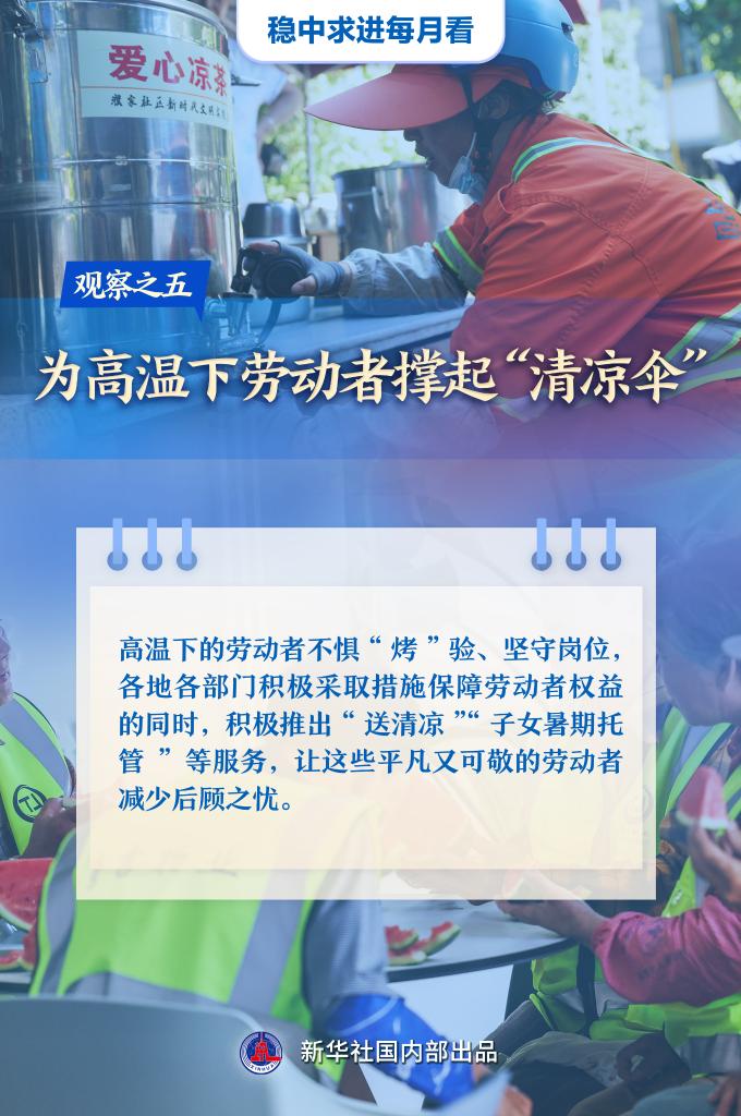 【記者觀察】高溫下的勞動者不懼“烤”驗、堅守崗位,各地各部門積極采取措施保障勞動者權益的同時,積極推出“送清涼”“子女暑期托管”等服務,讓這些平凡又可敬的勞動者減少后顧之憂。