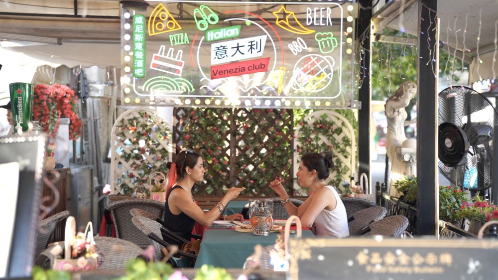 夜晚的意式風(fēng)情區(qū),曼妙的音樂與游客的交談聲交織,觥籌交錯(cuò)間別有一番韻味。忙碌之余,雷納托父子倆感慨道:“在中國生活越來越便捷,在這里找到了家的感覺。”