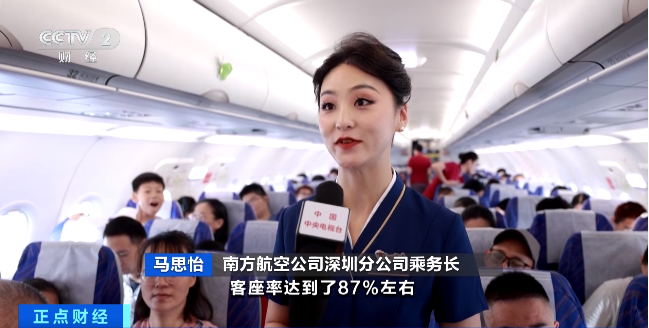 南方航空公司深圳分公司乘務(wù)長(zhǎng) 馬思怡:今天深圳-銀川-阿勒泰航線的航班客座率達(dá)到了87%左右。新開這個(gè)航線,為去阿勒泰旅行的旅客提供了便利,也省去了中轉(zhuǎn)的麻煩。