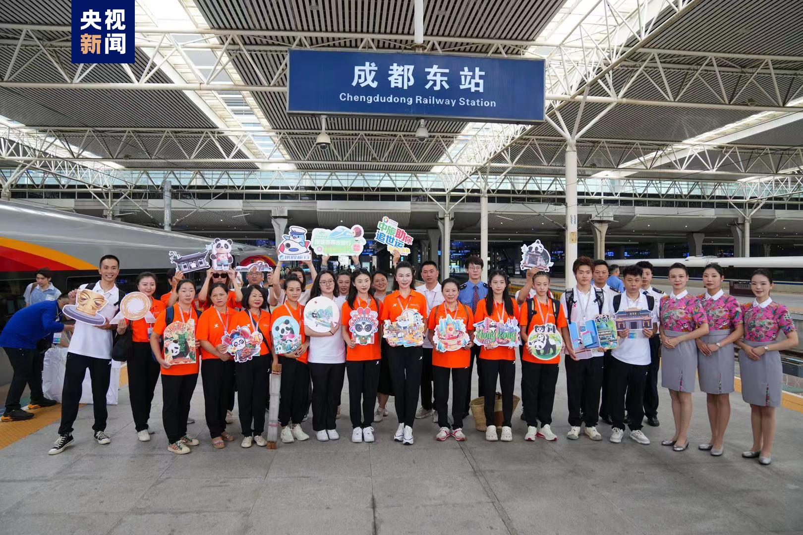 記者從成都世運(yùn)會(huì)執(zhí)委會(huì)和中國(guó)鐵路成都局集團(tuán)公司了解到,今天發(fā)車的“世運(yùn)蓉港行”主題列車(G2963成都東站——香港西九龍站),搭載了川籍奧運(yùn)冠軍、輪滑運(yùn)動(dòng)員、蓉港企業(yè)家、川劇藝術(shù)家、非遺傳承人、川菜企業(yè)、博物館金牌講解員等嘉賓赴港。