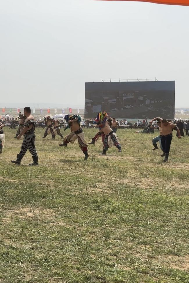 那達慕現(xiàn)場搏克手摔跤