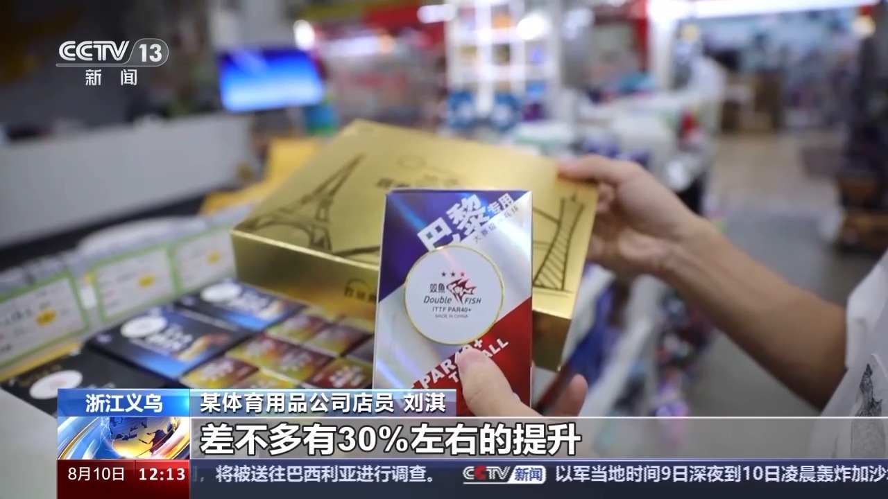 某體育用品公司店員 劉淇:巴黎奧運(yùn)會的紀(jì)念珠目前銷量是最好的,現(xiàn)在差不多有30%左右的提升。