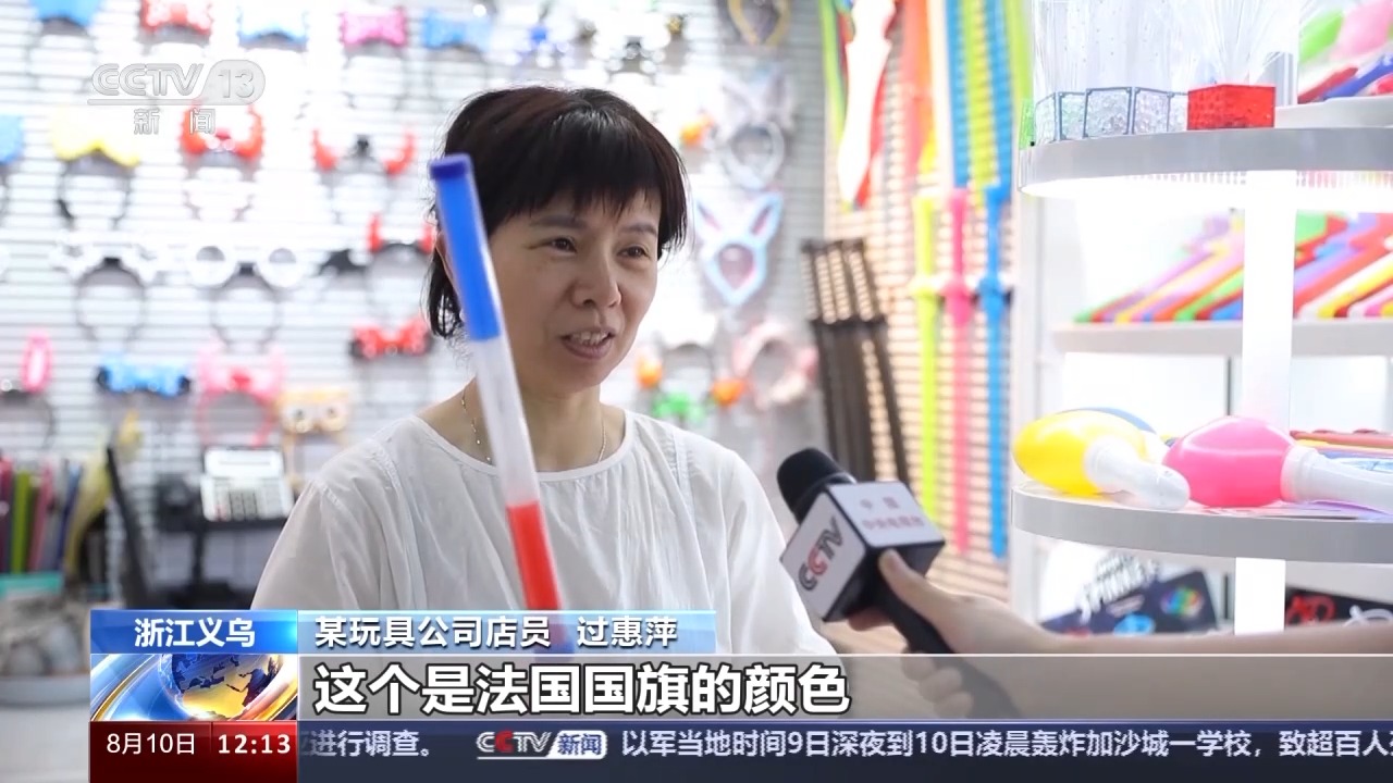 某玩具公司店員 過惠萍:這個(gè)是法國國旗的顏色,這款走量還可以,比往年訂單多10%到20%。