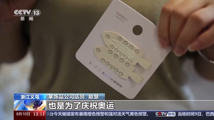 7月27日,隨著黃雨婷、盛李豪組合在巴黎奧運會上贏得射擊混合團體10米氣步槍金牌,黃雨婷佩戴的發(fā)夾也引起網(wǎng)友的關(guān)注,迅速成為社交媒體的熱門話題。在義烏國際商貿(mào)城,同款發(fā)卡再次“爆單”,銷售量得到顯著增長。