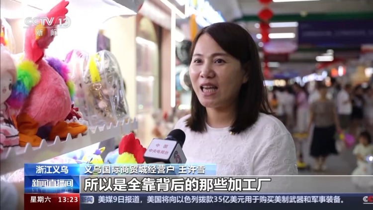 義烏國際商貿(mào)城經(jīng)營戶 王許雪:像我們背后都有100來家工廠給我們供應,所以是全靠背后的那些加工廠來支持我們,全國各地的都有。