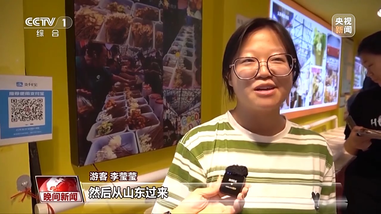 游客 李瑩瑩:之前在網(wǎng)上刷到過,從山東過來,也嘗嘗當?shù)氐囊恍┨厣覀兡沁呥€是有文化的差異,一個很新奇的體驗。
