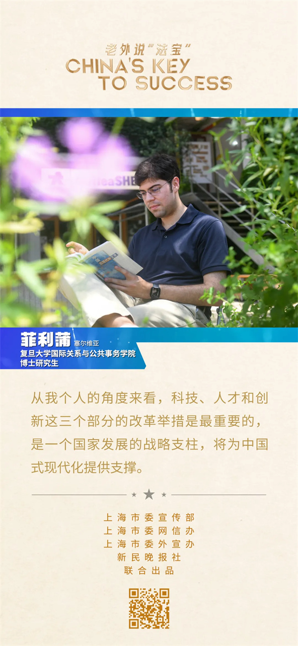 塞爾維亞帥小伙菲利蒲是復旦大學國際關系與公共事務學院博士研究生。很小的時候,他就跟隨來華從事歷史研究工作的父母來到上海,小學二年級就當上了留學生。用他的話來說,就是“接受了九年制義務教育”。