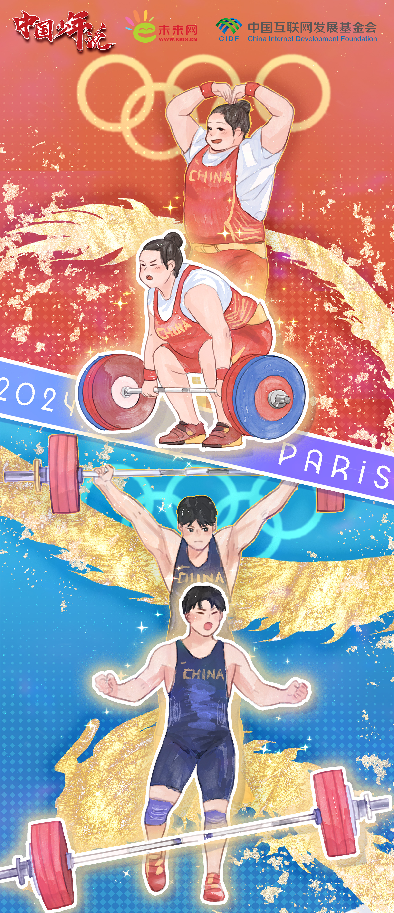 每一次杠鈴的舉起,都是對體能極限的挑戰(zhàn);每一次重量的征服,都是對自我潛能的突破。李雯雯分享訓(xùn)練日常時(shí),經(jīng)常使用一個(gè)叫“雯扎雯打”的話題詞,這也正是她一路走來,最真實(shí)而生動(dòng)的寫照。從在舉重亞錦賽刷新女子87公斤以上級三項(xiàng)世界紀(jì)錄,到在東京奧運(yùn)會(huì)奪冠并打破三項(xiàng)奧運(yùn)紀(jì)錄,再到在巴黎奧運(yùn)會(huì)上克服傷病造成的心理和身體上的障礙成功衛(wèi)冕,展示王者歸來的風(fēng)范,擁有碾壓級實(shí)力的她,一次次地將責(zé)任扛在了肩上,也將國家榮譽(yù)穩(wěn)穩(wěn)地舉了起來。同樣,劉煥華在3年內(nèi)橫跨5個(gè)級別完成升級,并最終在巴黎奧運(yùn)會(huì)上“舉”起了這枚極具分量的金牌背后,是他克服了不斷增重的痛苦、舉重訓(xùn)練的枯燥,更以“拼命三郎”的毅力和決心進(jìn)行自我錘煉。巴黎奧運(yùn)會(huì)之前,中國男舉還沒有100公斤以上級別的奧運(yùn)金牌,第一次站上奧運(yùn)舞臺(tái)的他不僅堅(jiān)實(shí)地邁出了這一步,更以卓越的表現(xiàn)向世界宣告了中國舉重不可估量的潛力。
