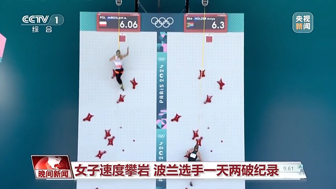 速度攀巖,唯快不破。在女子速度攀巖比賽中,波蘭名將米羅斯拉夫一天之內(nèi)兩破紀錄,最終將其定格在6秒06,也是奧運會上用時最短的女子項目世界紀錄。自2021年以來,這一項目的世界紀錄已被刷新9次。人類的運動能力,的確超乎想象。