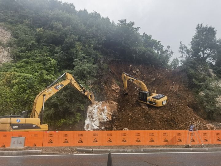 8月6日,大型機(jī)械設(shè)備在清理位于吉林省集安市下解放村一處山坡上的“落石”。新華社發(fā)