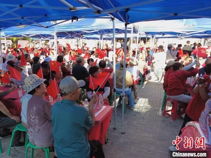 日前,“鑄牢共同體 中華一家親”主題宣傳“塞上江南寫新篇”集中采訪團走進寧夏吳忠市利通區(qū)勝利鎮(zhèn)。圖為該鎮(zhèn)第二十屆社區(qū)鄰居節(jié)百家宴現(xiàn)場。中新網(wǎng)記者 劉玥晴 攝