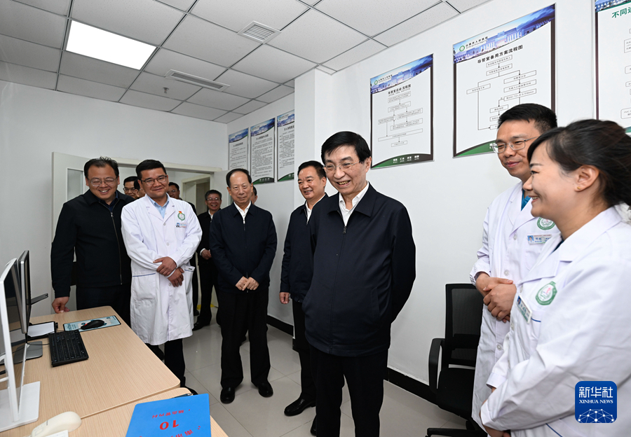 中共中央政治局常委、全國政協(xié)主席王滬寧到拉薩、山南就對口援藏等工作開展情況進行調(diào)研。這是8月27日,王滬寧在山南市人民醫(yī)院調(diào)研。新華社記者 申宏 攝