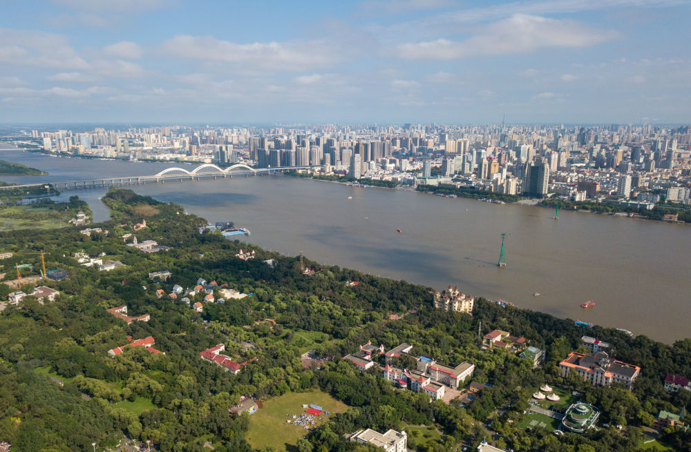 8月20日拍攝的松花江哈爾濱段和太陽(yáng)島局部(無(wú)人機(jī)照片)。