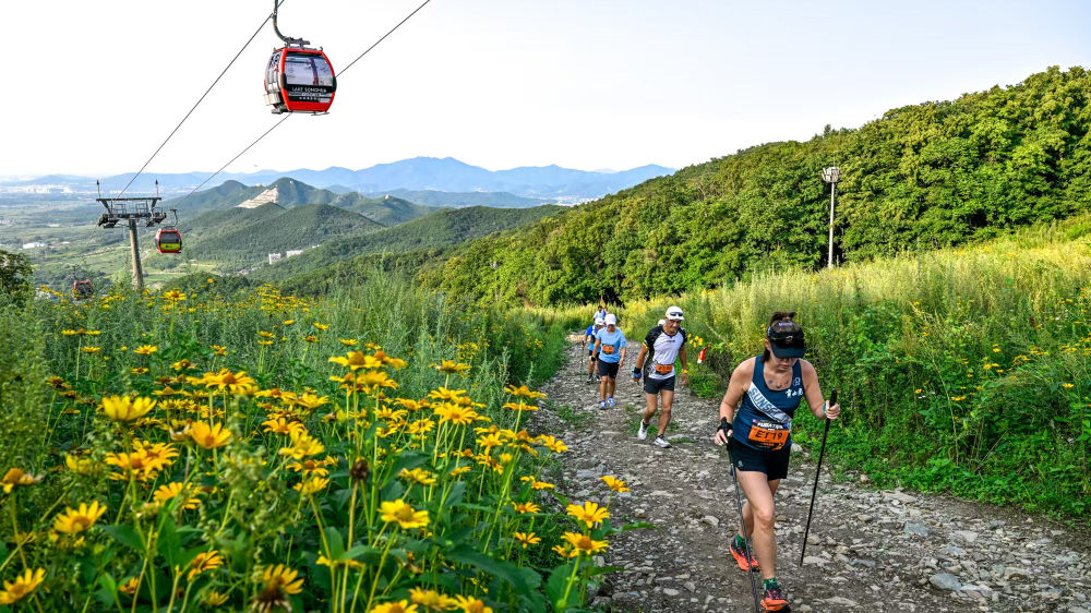 8月24日,越野跑愛(ài)好者在吉林市萬(wàn)科松花湖度假區(qū)越野跑。