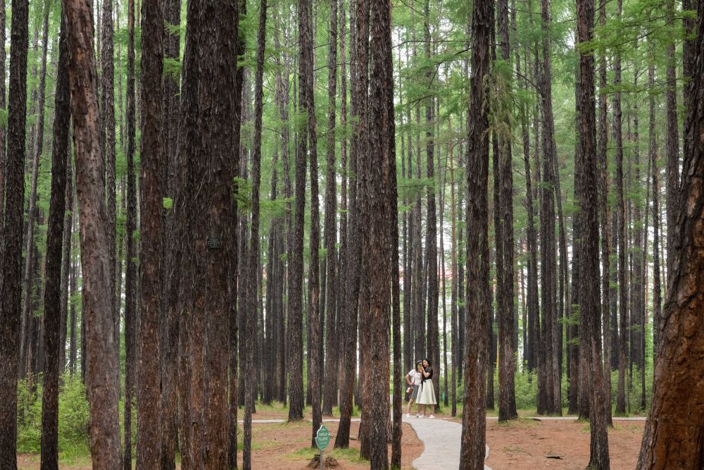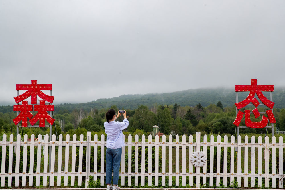 8月27日,游客在黑龍江伊春市上甘嶺溪水國(guó)家森林公園內(nèi)拍照。