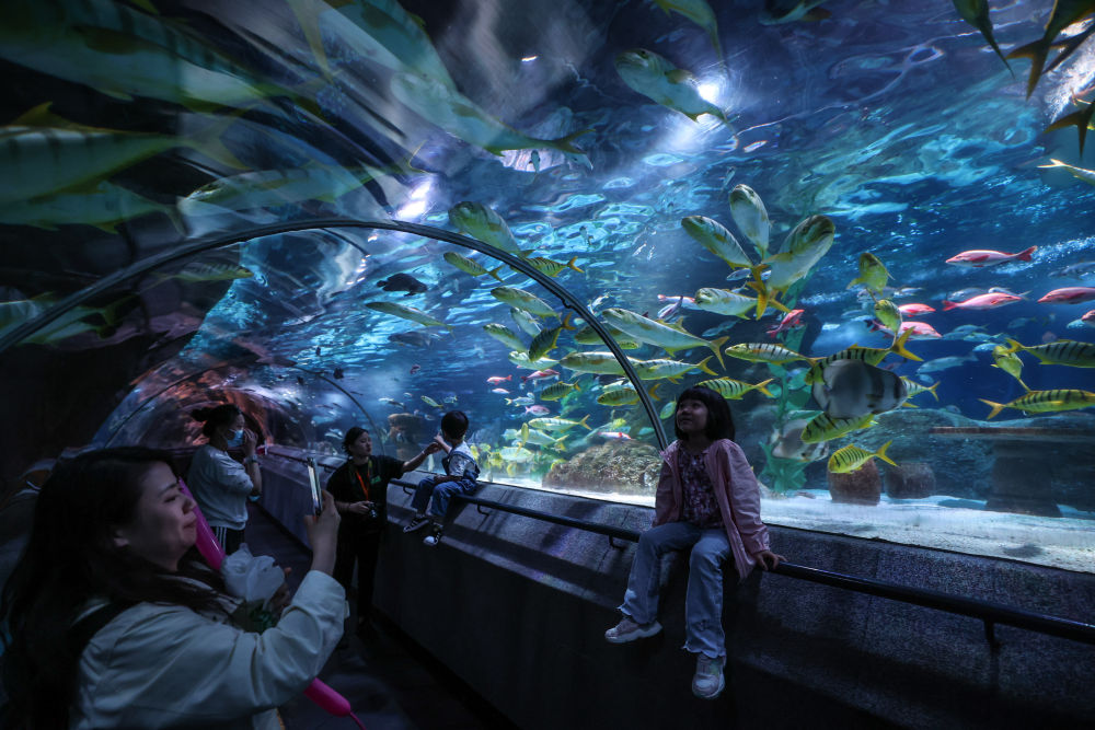 游客在大連圣亞海洋世界觀賞海洋魚(yú)類(5月22日攝)。