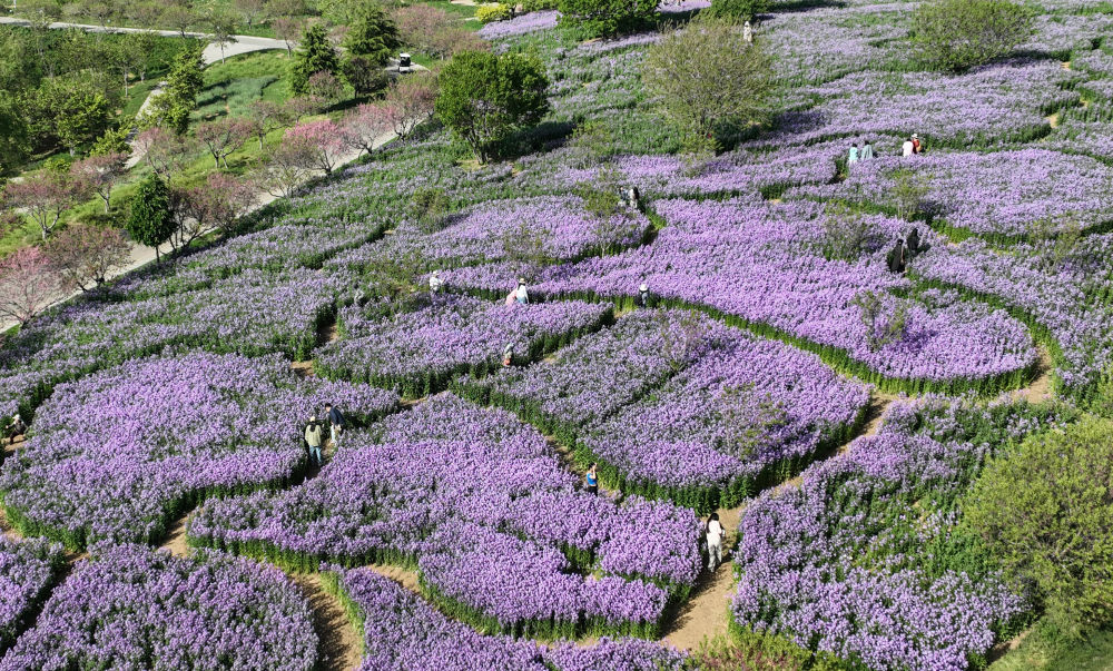 游客在遼寧大連英歌石植物園游覽(5月11日攝,無(wú)人機(jī)照片)。