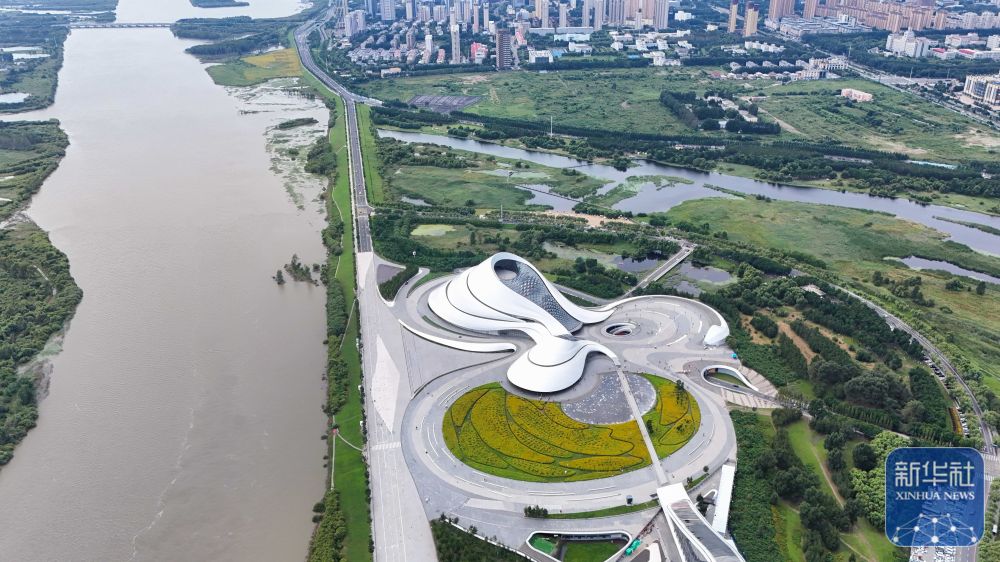 ↑這是哈爾濱大劇院臨江景色(8月20日攝,無(wú)人機(jī)照片)。