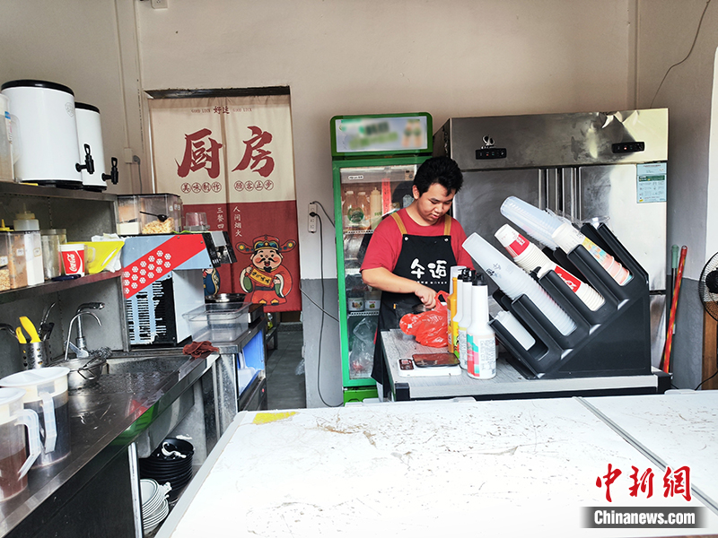 小伙叫蘭嘉祥,1999年生人,他的店鋪在今年5月1日開(kāi)張,是受到政府扶持的返鄉(xiāng)創(chuàng)業(yè)項(xiàng)目之一。村里為他提供了租金優(yōu)惠,第一年免租,以鼓勵(lì)他在老街開(kāi)店。與村干部溝通后,蘭嘉祥決定將店鋪定位于同時(shí)滿足本地人和游客的需求,“游客群體傾向于購(gòu)買紅糖產(chǎn)品,而村民則更偏愛(ài)奶茶飲品?!?/p>