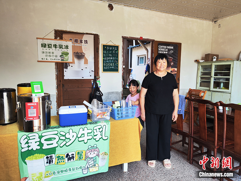 南山鎮(zhèn)中復(fù)村,村民上官大姐和她經(jīng)營(yíng)的冷飲店。劉越 攝