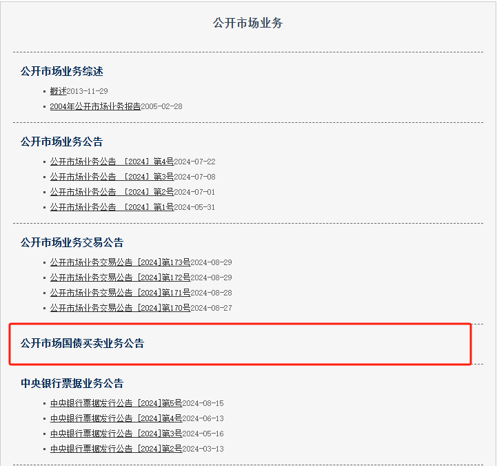 8月28日,中國(guó)人民銀行官網(wǎng)“公開(kāi)市場(chǎng)業(yè)務(wù)”專(zhuān)題頁(yè)面上線(xiàn)“公開(kāi)市場(chǎng)國(guó)債買(mǎi)賣(mài)業(yè)務(wù)公告”欄目。此次在官網(wǎng)欄目更新,顯示央行已為公開(kāi)市場(chǎng)國(guó)債買(mǎi)賣(mài)業(yè)務(wù)做好準(zhǔn)備,再次釋放其將在公開(kāi)市場(chǎng)開(kāi)展國(guó)債買(mǎi)賣(mài)操作的信號(hào)。