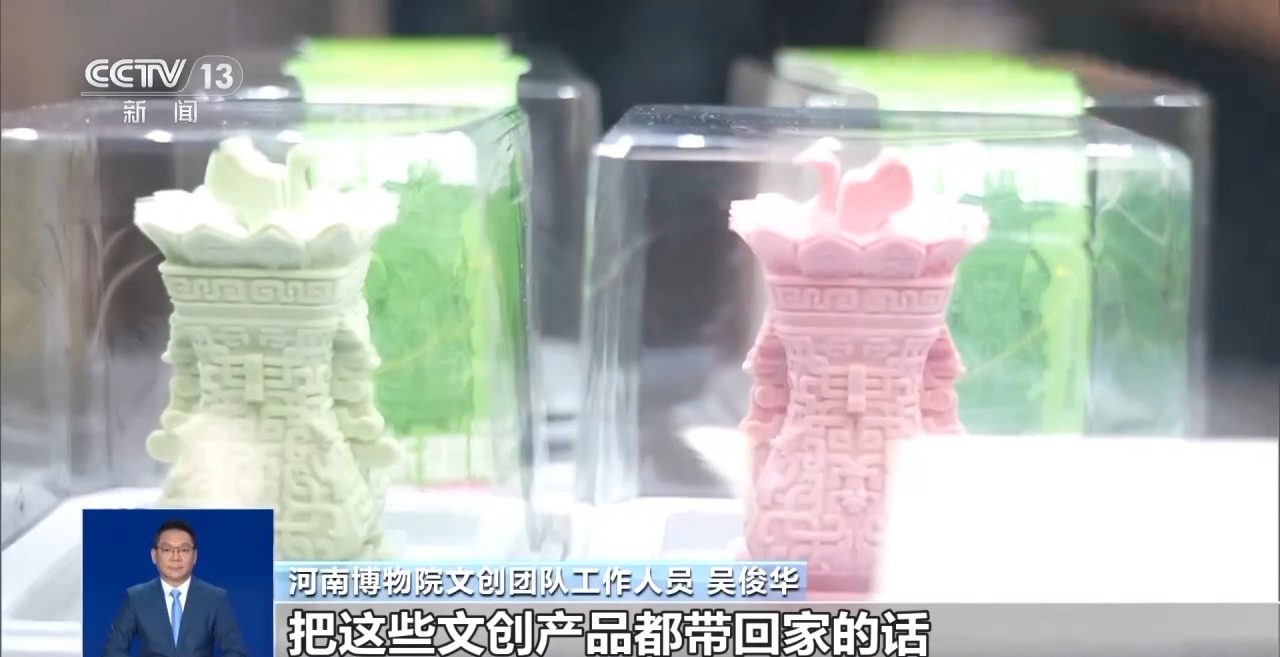 河南博物院文創(chuàng)團(tuán)隊(duì)工作人員 吳俊華:文化是文創(chuàng)的靈魂,創(chuàng)意是文創(chuàng)的生命,把這些文創(chuàng)產(chǎn)品都帶回家的話,等于說(shuō)把一座小型的博物館帶回去了,其實(shí)這就是讓文物“活”起來(lái)。