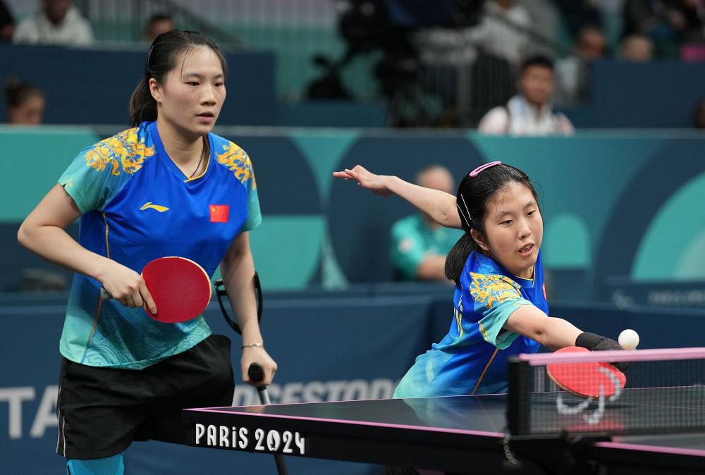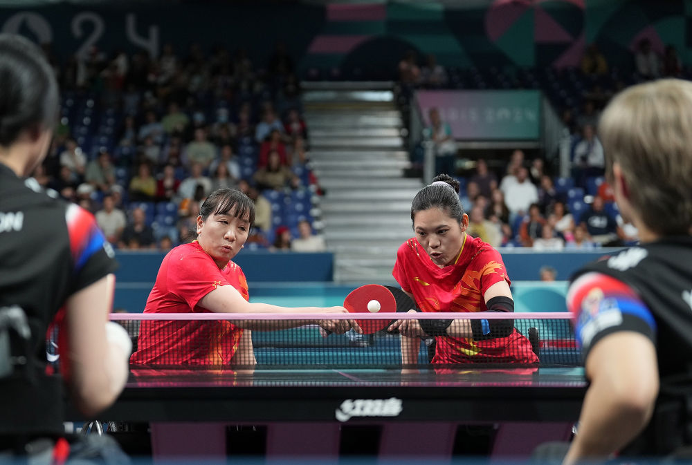 女雙14級決賽上,19歲的黃文娟搭檔16歲的金芋成,以3:1戰(zhàn)勝德國組合格雷貝/沃爾夫,贏得本屆殘奧會乒乓球首金。隨后的女雙5級決賽,36歲的劉靜搭檔34歲的薛娟,以3:1擊敗韓國組合徐秀妍/尹智裕,為中國隊再添一金。