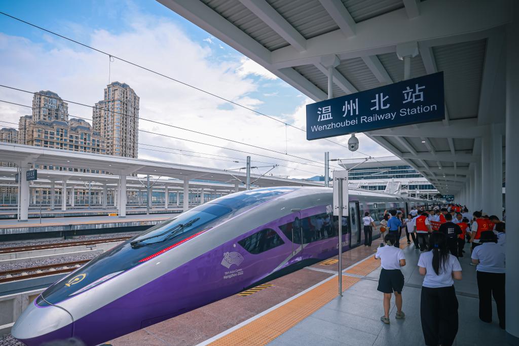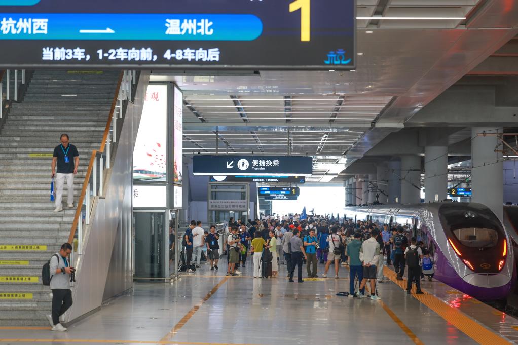 9月6日,從杭州西站開(kāi)出的首發(fā)列車(chē)抵達(dá)溫州北站。新華社記者 江漢 攝