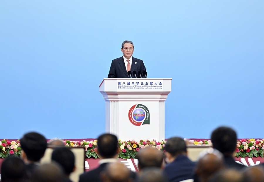9月6日上午,國(guó)務(wù)院總理李強(qiáng)在北京國(guó)家會(huì)議中心出席第八屆中非企業(yè)家大會(huì)開幕式并致辭。新華社記者 殷博古 攝