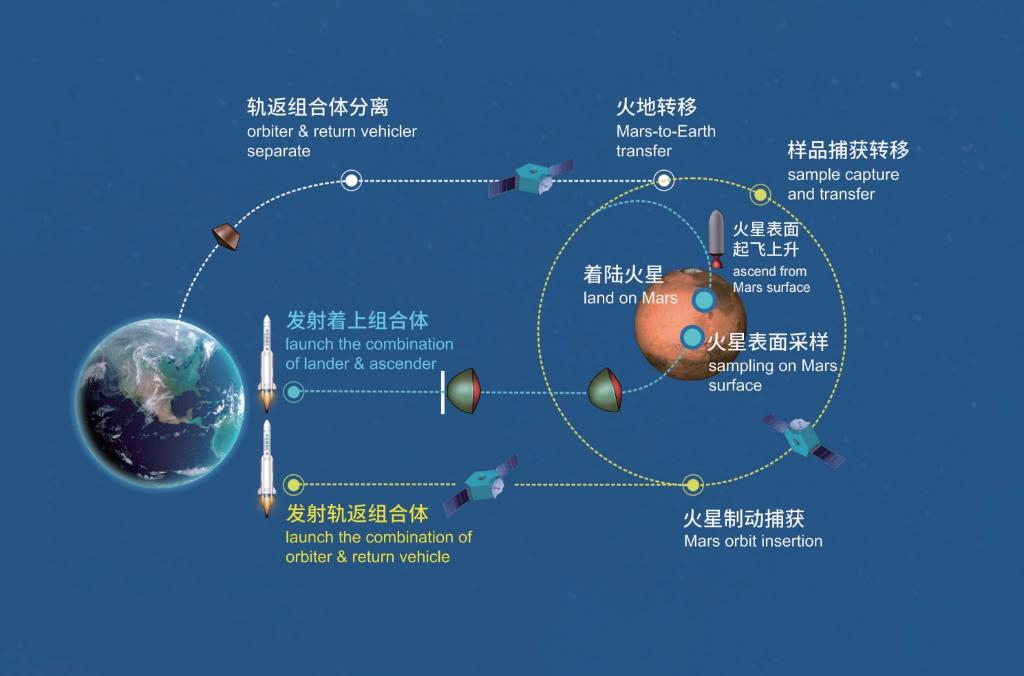 這是天問(wèn)三號(hào)任務(wù)過(guò)程示意圖。新華社發(fā)(深空探測(cè)實(shí)驗(yàn)室供圖)