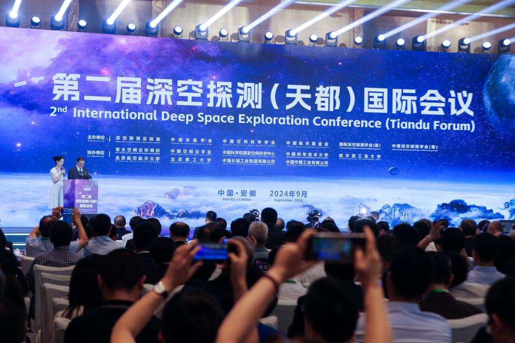 9月5日,這是第二屆深空探測(cè)(天都)國(guó)際會(huì)議開(kāi)幕式現(xiàn)場(chǎng)。新華社發(fā)(施亞磊 攝)