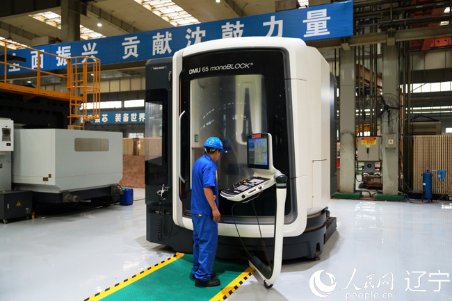 技術(shù)人員在沈鼓生產(chǎn)車(chē)間里調(diào)整設(shè)備參數(shù)。人民網(wǎng)記者 邱宇哲攝