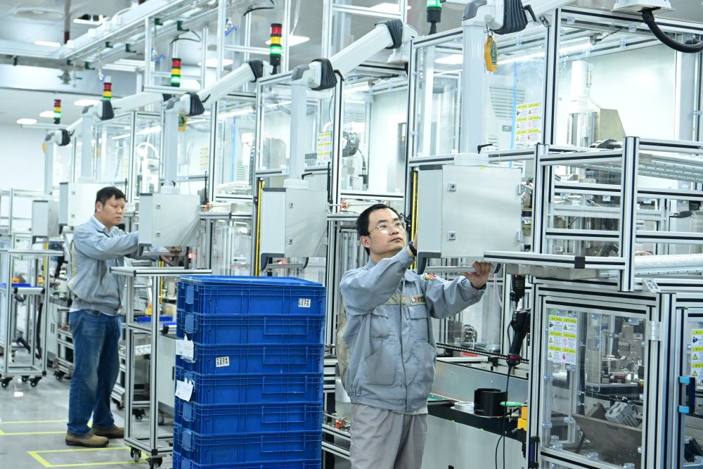 在江蘇省太倉(cāng)港經(jīng)濟(jì)技術(shù)開(kāi)發(fā)區(qū)博馬(蘇州)控股有限公司,生產(chǎn)技術(shù)人員正在生產(chǎn)汽車渦輪增壓器產(chǎn)品(6月19日攝)。