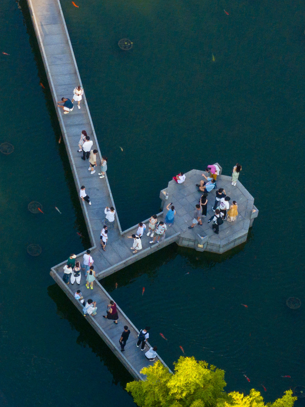 游客在蘇州博物館內(nèi)的景觀曲橋參觀游玩(8月29日攝)。