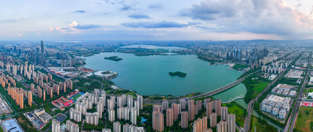 這是8月29日拍攝的蘇州金雞湖(無(wú)人機(jī)照片)。