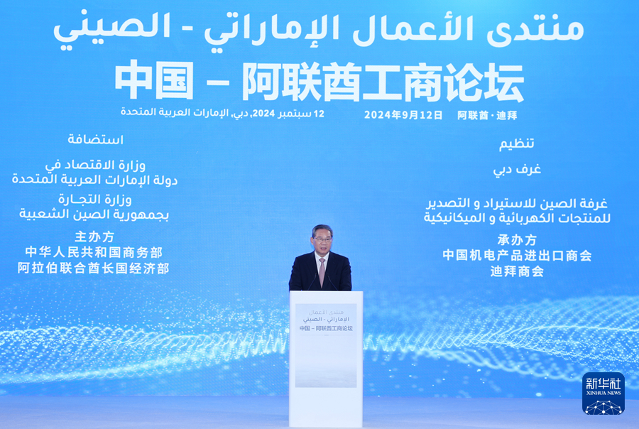 當(dāng)?shù)貢r間9月12日下午,國務(wù)院總理李強在迪拜出席中國-阿聯(lián)酋工商論壇并致辭。