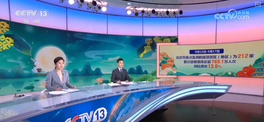通過數(shù)據(jù)盤點(diǎn)各地出游的情況,北京市文旅局統(tǒng)計(jì),9月15日至17日,北京全市重點(diǎn)監(jiān)測的旅游景區(qū)(地區(qū))為212家,累計(jì)游客接待總量769.1萬人次,同比增長13.6%,比2019年增長1.4倍。