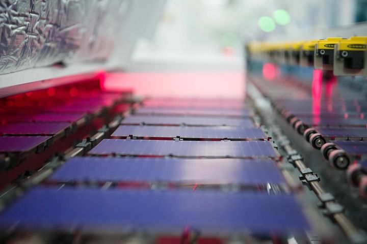 安徽合肥,全球單體產(chǎn)能最大的異質(zhì)結(jié)光伏電池及組件一體化工廠,工業(yè)機(jī)器人將一個(gè)個(gè)硅片投送到一架白色機(jī)器的腔體,經(jīng)過(guò)綿延的智能化流水線,狀如手機(jī)大小、薄如紙片的光伏電池片便下線了。