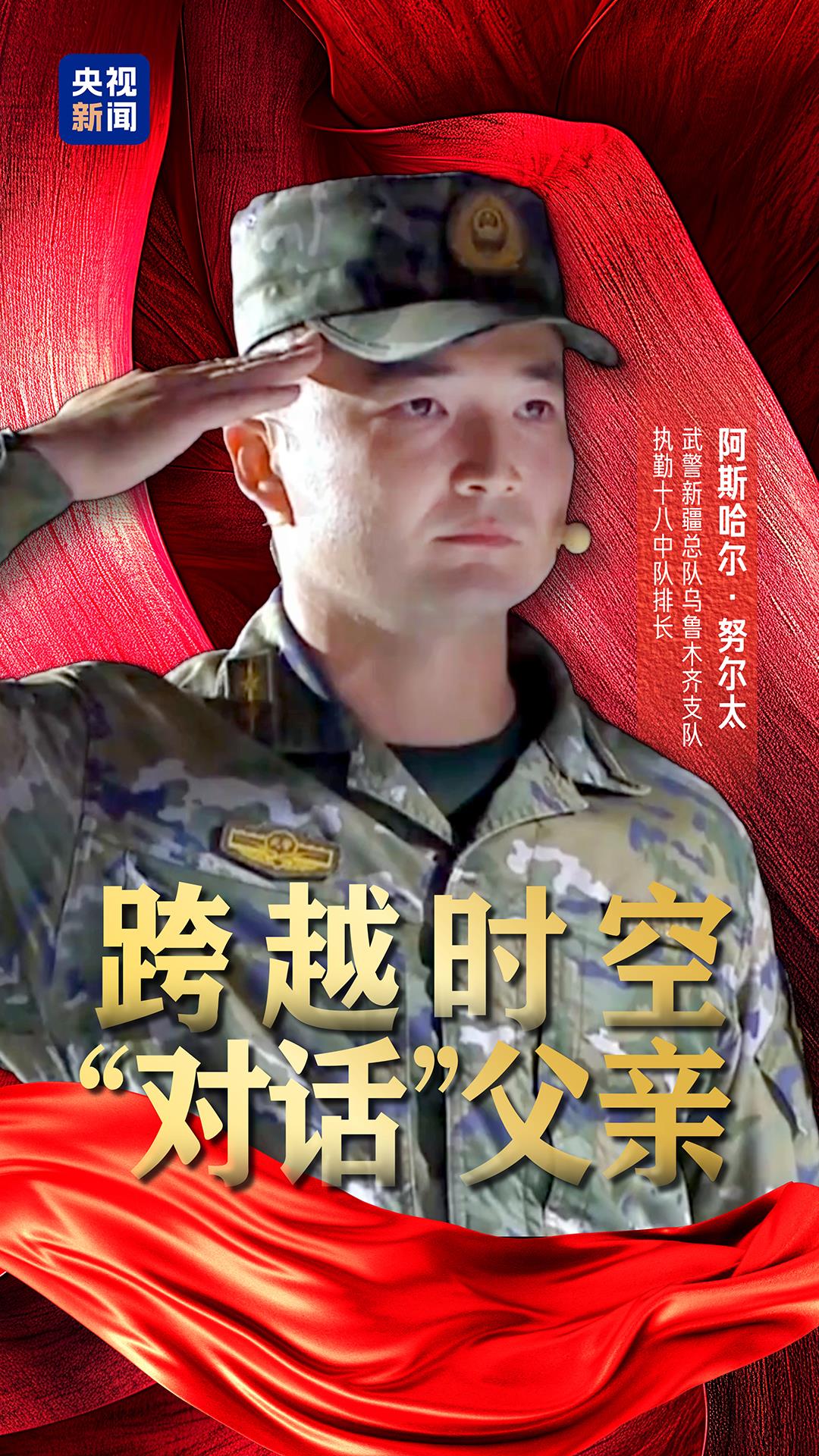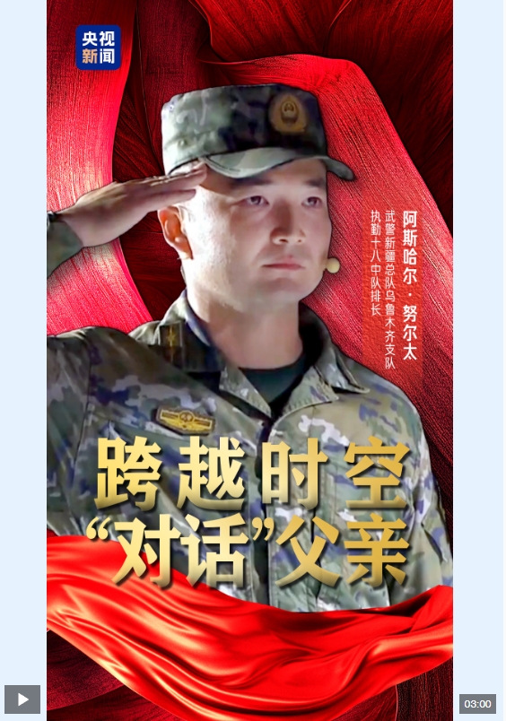 21日晚《把青春華章寫在祖國大地上》大思政課網(wǎng)絡(luò)主題活動現(xiàn)場,投筆從戎的南開學(xué)子阿斯哈爾 · 努爾太,通過AI技術(shù)穿越時空與父親對話。阿斯哈爾獻(xiàn)給父親的一個軍禮,令無數(shù)人動容。