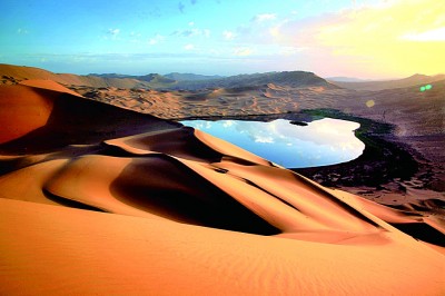 被沙丘環(huán)繞的扎拉特湖。哈斯巴根攝