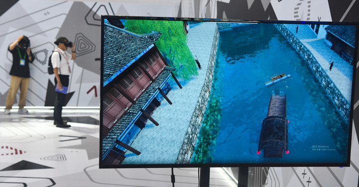 9月21日,觀眾在第十四屆中國國際數(shù)字出版博覽會上體驗(yàn)大運(yùn)河VR沉浸式研學(xué)空間。 新華社記者 楊冠宇 攝
