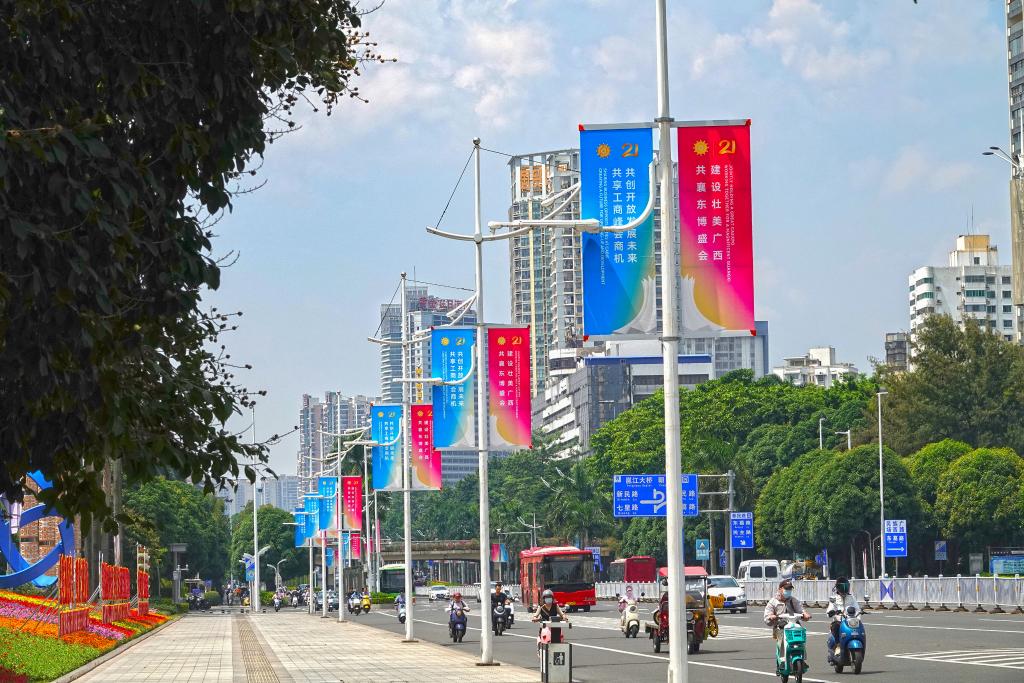 行走在南寧街頭,可見(jiàn)各式東博會(huì)和峰會(huì)的元素。今年的盛會(huì)以“親誠(chéng)惠容同發(fā)展,鑲鉆成冠創(chuàng)未來(lái)”為主題,會(huì)期持續(xù)至28日,展覽規(guī)模近20萬(wàn)平方米,參展企業(yè)超3000家。