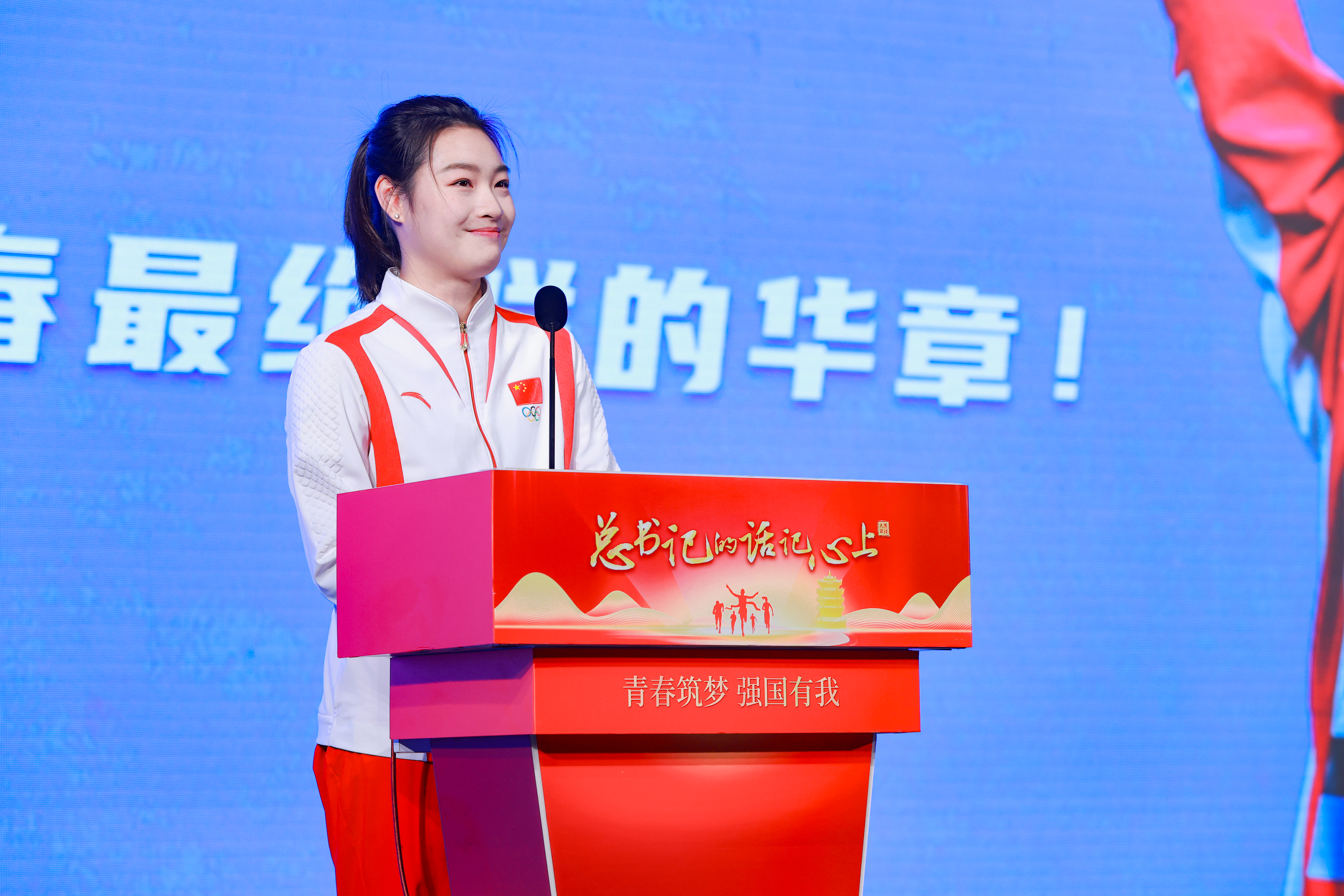 奧運(yùn)冠軍昌雅妮驚喜亮相,一到現(xiàn)場就引起了學(xué)生們的歡呼與喝彩。她和同學(xué)們親密合影,引爆全場!接著,她登臺(tái)動(dòng)情講述奪冠背后的故事:“從跳校到奧運(yùn)冠軍,我的每一步都凝聚著汗水、淚水與堅(jiān)持……”回憶起訓(xùn)練的艱辛歷程,她幾度哽咽落淚,讓人心疼。決勝巴黎、綻放奧運(yùn)的背后,是堅(jiān)持的力量!昌雅妮以自己的切身經(jīng)歷,激勵(lì)青年學(xué)子:“只要有夢(mèng)想,我們就不懼遠(yuǎn)航,堅(jiān)持的力量,將繪就青春最絢爛的華章!”