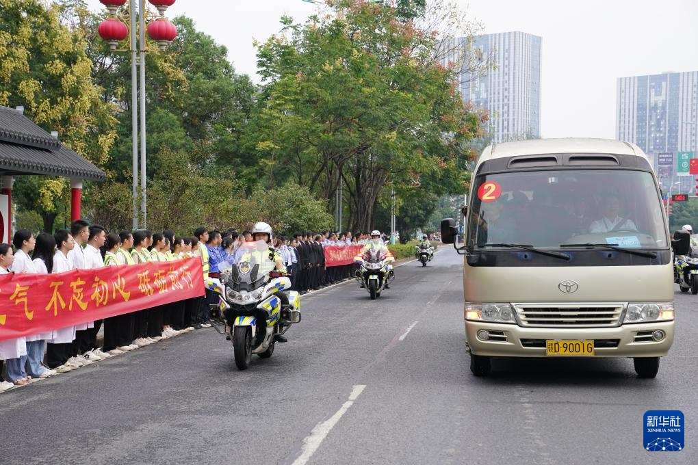 9月25日,載有黃公略烈士遺骸的車輛從吉安市青原區(qū)市區(qū)經(jīng)過,市民在街道兩旁送別。新華社記者 周密 攝