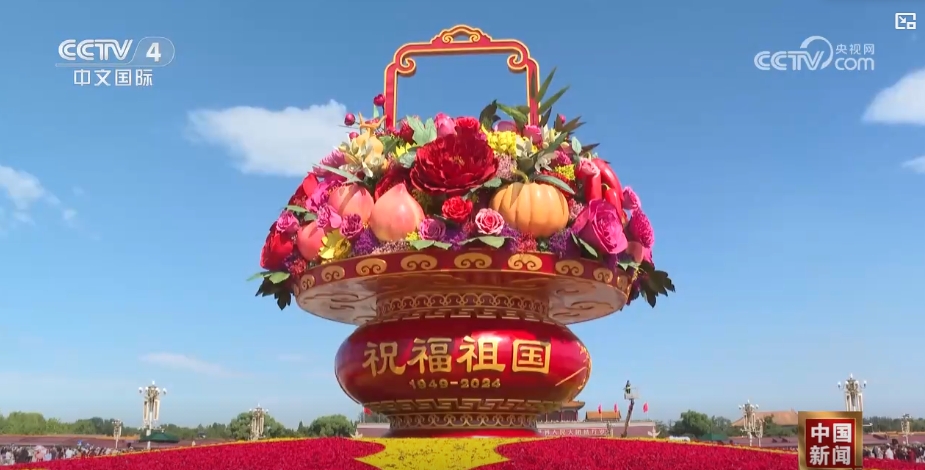 25日,北京天安門廣場(chǎng)和長安街沿線等重點(diǎn)區(qū)域花卉正式亮相。天安門廣場(chǎng)中心的“祝福祖國”大型花壇,吸引了眾多游客拍照打卡。