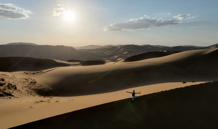巴丹吉林沙漠絕大部分位于內(nèi)蒙古阿拉善盟境內(nèi),西近古居延澤,東望黃河,南眺祁連山余脈,北依額濟納綠洲。巴丹吉林常住人口不足百人,極少的人為干預(yù)使大自然一直保持原貌。