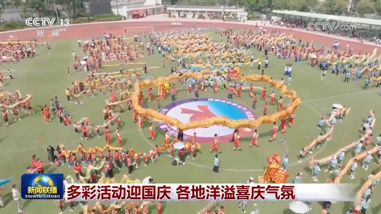 連日來,香港舉行多場活動慶祝國慶。在新界屯門舉行的活動中,近80所學(xué)校的師生們舞動75只醒獅和180余條彩龍,展現(xiàn)愛國、愛港精神。在維多利亞港海濱舉行了千人大合唱活動。
