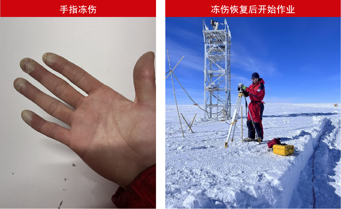 真正到了南極,他也親身體會了這些生死挑戰(zhàn)。在剛剛抵達(dá)昆侖站開展作業(yè)的過程中,因為需要點觸手機屏幕,不能穿戴厚手套,超過零下30度的極寒凍傷了他的手指,隨隊醫(yī)生診斷說再嚴(yán)重下去可能會有截肢的風(fēng)險?!拔译y道我就這樣無法完成這次的任務(wù)了嗎?”在耿通強烈地請求下,醫(yī)生為他做了引流治療,傷情才得以好轉(zhuǎn)。而他也未等手指恢復(fù),便投入到緊張的科研工作中。